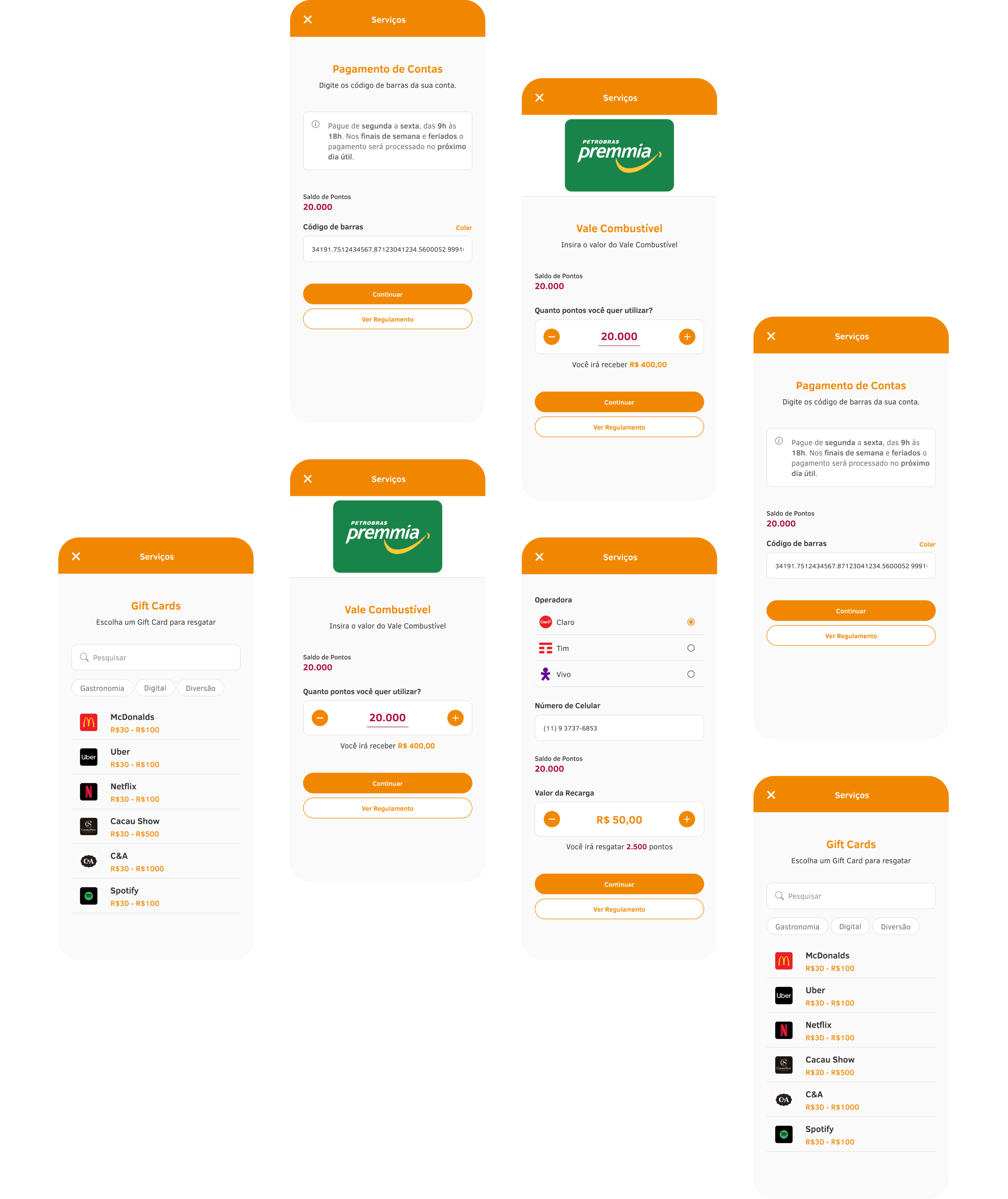 Projeto de criação de quatro novos produtos dentro do App de cartões do Banco do Nordeste, permitindo que os usuários resgatem seus pontos com pagamento de contas, recarga de celular, vale combustível e gift cards.